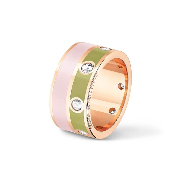 Bague Double Persan & Bellefond Vert Mousse Spiaggia Rosa 3 Diamants DRDISMSR