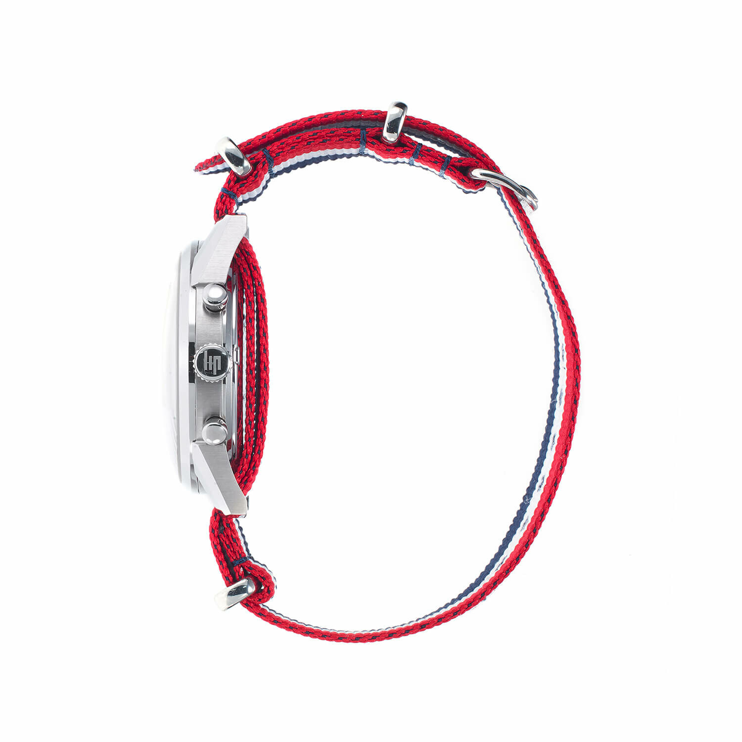 Il s’accompagne d’un bracelet NATO tricolore, bleu, blanc et rouge, véritable clin d’œil au drapeau français et à l’esprit de service qui anime les pompiers.