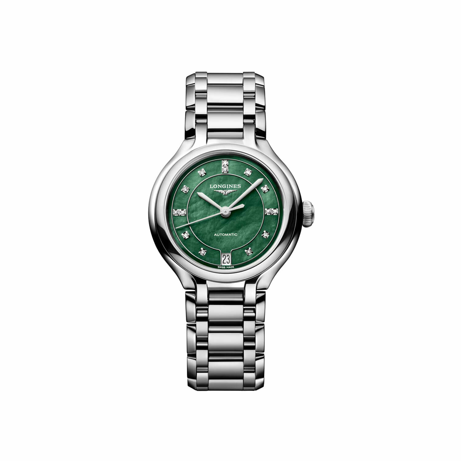 Avec son cadran en nacre verte, cette Longines PrimaLuna Automatic propose une lecture délicatement audacieuse de la féminité.
